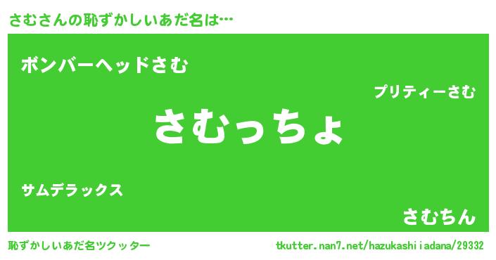 | 男性向けラノベタイトル風あだ名 | 『転生したらさむだった件』 |