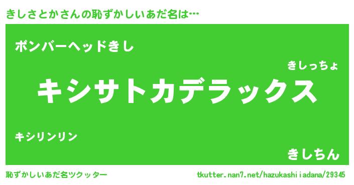 | 男性向けラノベタイトル風あだ名 | 『Re:きしさとかから始める異世界生活』 |