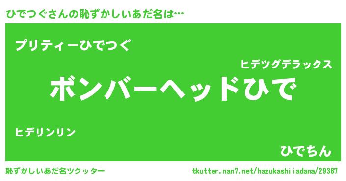 | ヒーロー風カッコイイあだ名 | 『仮面ヒデダー』『友情の使者ひでつぐ』 |