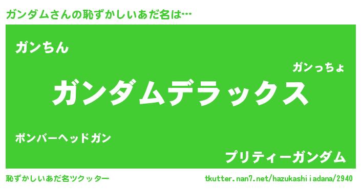 | 意味不明あだ名 | 『自称ガンダム』『なめこ科ガンダム属』 |