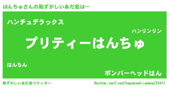 | ヘコむあだ名 | 『はんにゅー』『はんっ子』 |