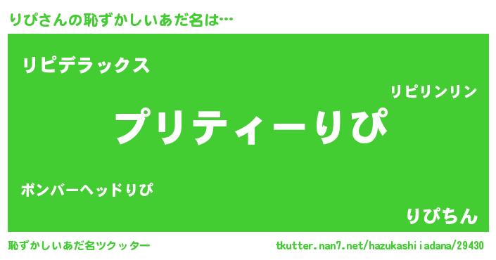| 意味不明あだ名 | 『ペロリンりぴ』『自称りぴ』 |