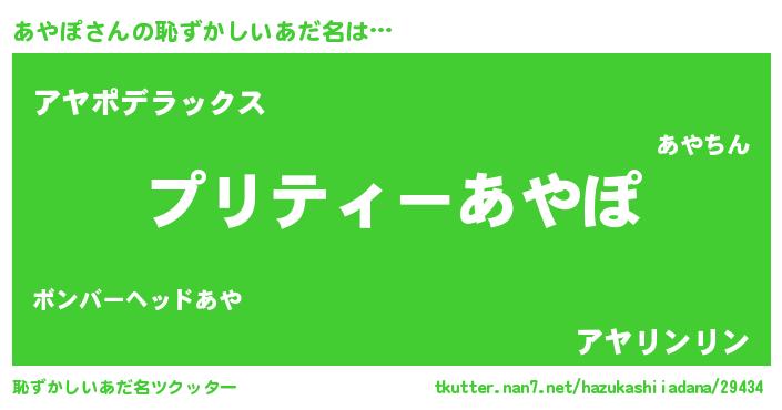 | ヘコむあだ名 | 『あやっふぃ~』『あやっぺ』 |