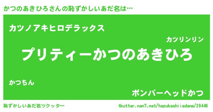 | 男性向けラノベタイトル風あだ名 | 『カツノアキヒロアートオンライン』 |