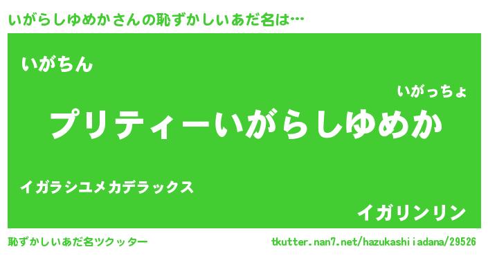 | 男性向けラノベタイトル風あだ名 | 『イガラシユメカスレイヤー』 |