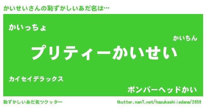 | ヒーロー風カッコイイあだ名 | 『スーパーカイセイ』『愛の使者かいせい』 |