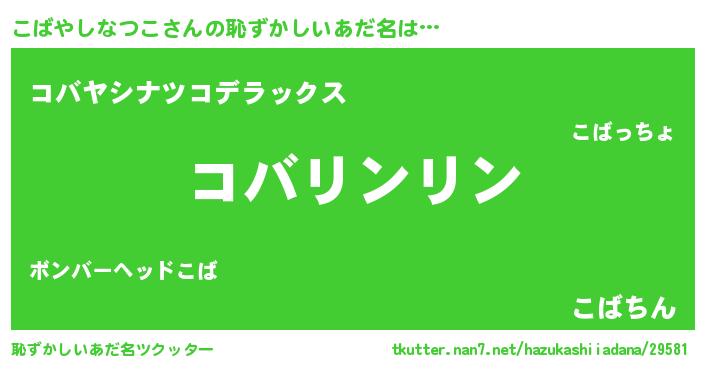 | ヘコむあだ名 | 『こばを』『こばやしなつこ(遠い目)』 |