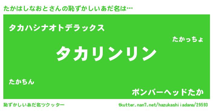 | 男性向けラノベタイトル風あだ名 | 『たかはしなおとの嫁は女の子じゃないと思った?』 |