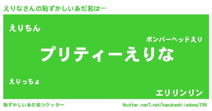 | ヘコむあだ名 | 『えりもー』『えりな(笑)』 |