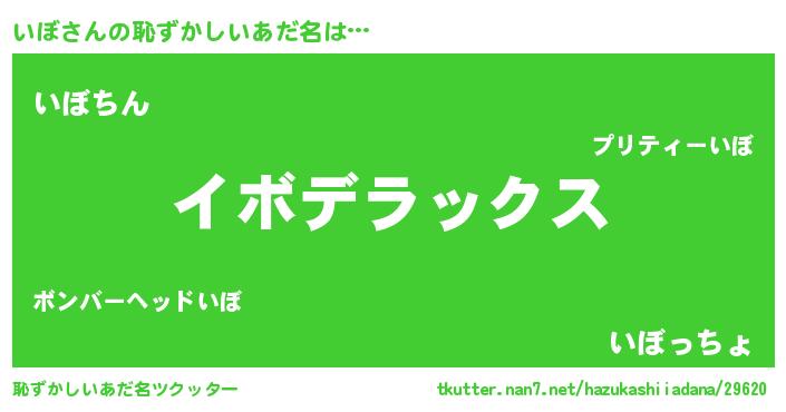 | ヘコむあだ名 | 『いぼ(震え声)』『豆乳』『いぼお』 |