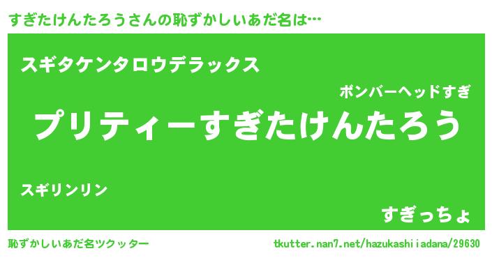 | ヒーロー風カッコイイあだ名 | 『スーパースギタケンタロウ』 |