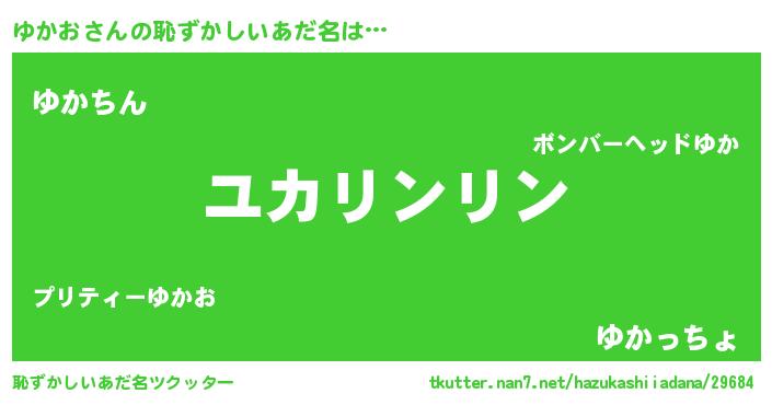 | ポケモン風あだ名 | 『ヒユカオ』『ユカゴンZ』『ゼニユカ』 |