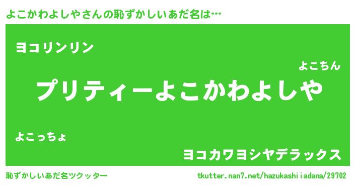 | 欧米人風あだ名 | 『ダレノガレよこかわよしや』 |