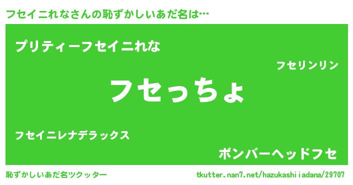 | 意味不明あだ名 | 『フセイニれなフォーエバー』 |