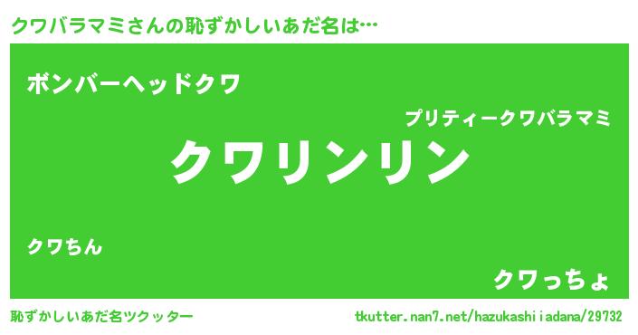 | 可愛いあだ名 | 『クっワぃー』『クワちゅっちゅ』 |