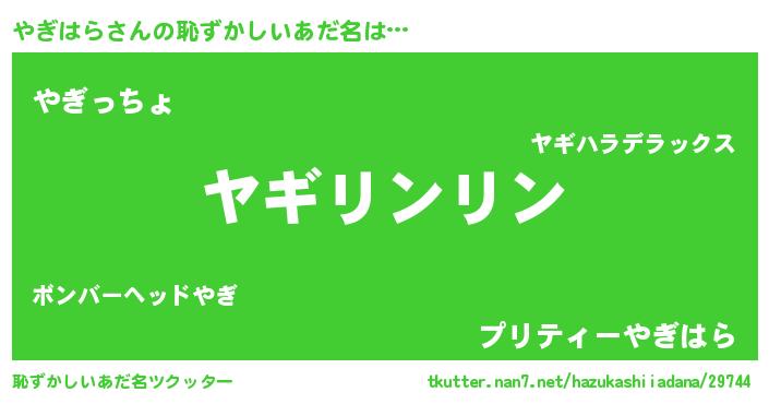 | ポケモン風あだ名 | 『ヒヤギハラ』『ヤーギイ』 |