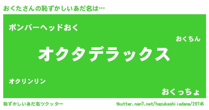 | ヒーロー風カッコイイあだ名 | 『究極戦士オクタ』『正義の使者おくた』 |
