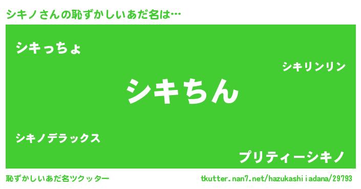 | ヘコむあだ名 | 『シキノ(笑)』『酢こんぶ』『シキを』 |