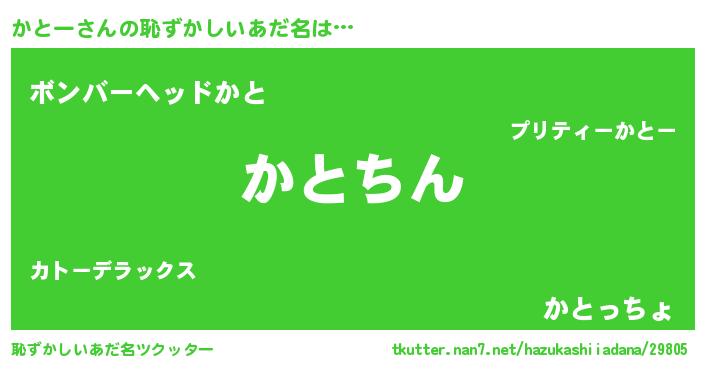 | ヒーロー風カッコイイあだ名 | 『仮面カトダー』『ネオカトー』 |