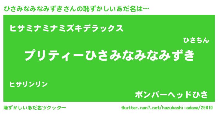 | ヘコむあだ名 | 『ひさふぇ~』『ひさみなみなみずき(爆)』 |