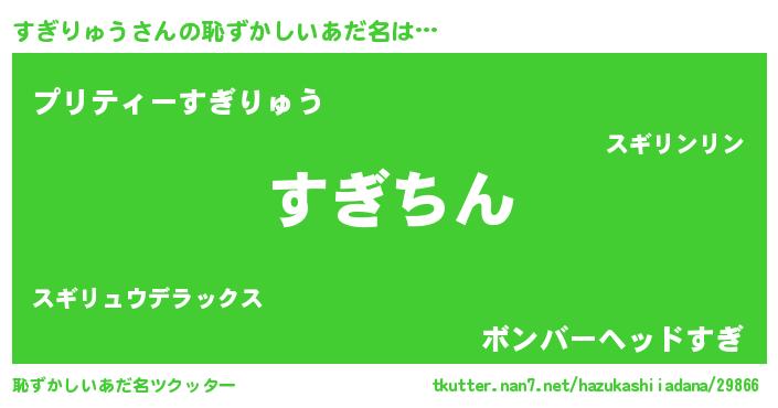 | 意味不明あだ名 | 『永久保存すぎりゅう』 |