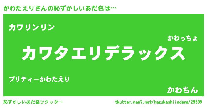 | ヒーロー風カッコイイあだ名 | 『仮面カワダー』『究極戦士カワタエリ』 |