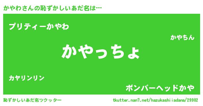 | ヘコむあだ名 | 『酢こんぶ』『かやっふぃ~』 |