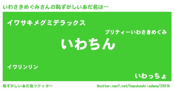 | ヘコむあだ名 | 『いわさきめぐみ(小並感)』『酢こんぶ』 |