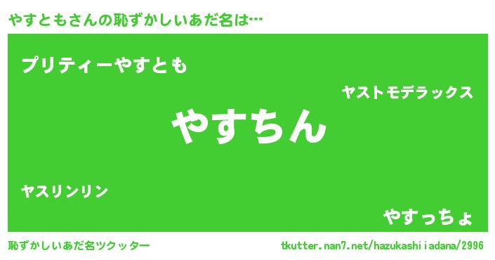 | ヘコむあだ名 | 『やすとも(爆)』『やすにー』『豆乳』 |
