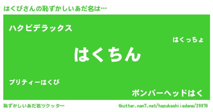 | ヘコむあだ名 | 『はくび(笑)』『豆乳』『はくもー』 |