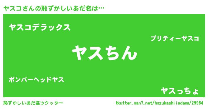 | 意味不明あだ名 | 『もやし科ヤスコ属』『永久保存ヤスコ』 |