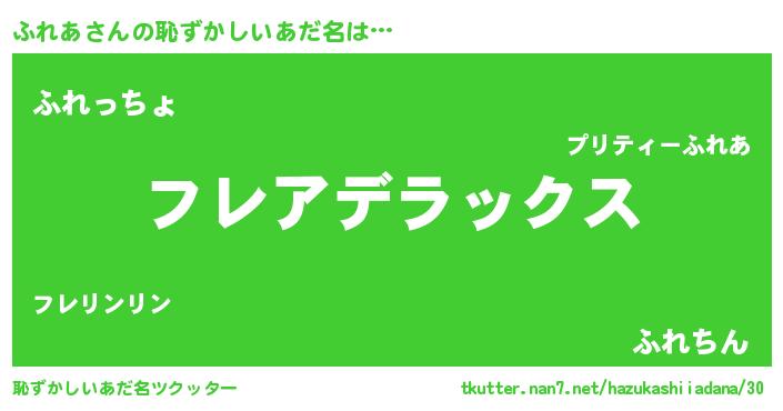 | 男性向けラノベタイトル風あだ名 | 『はたらくふれあさま!』『緋弾のフレア』 |