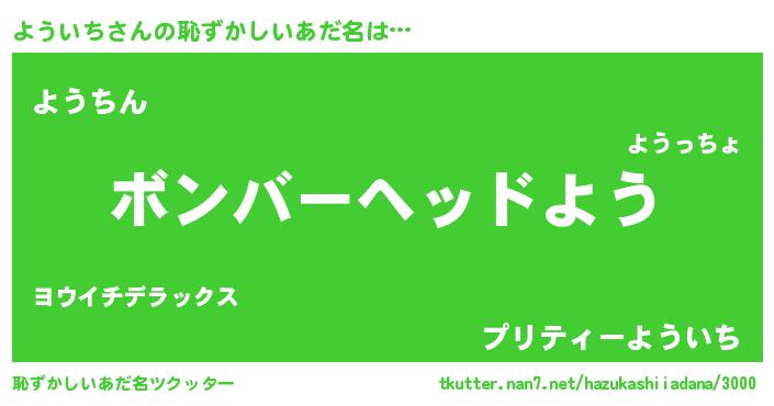 | ヘコむあだ名 | 『よういち(笑)』『ようにゅー』 |