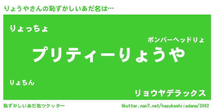| 男性向けラノベタイトル風あだ名 | 『この素晴らしい世界にりょうやを!』 |