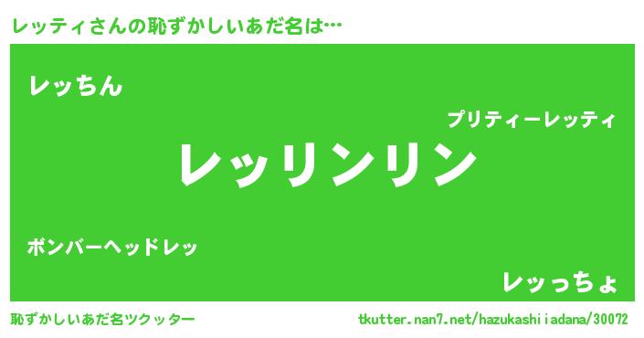 | 男性向けラノベタイトル風あだ名 | 『レッティスレイヤー』 |