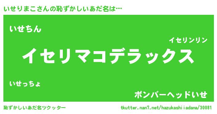 | ヘコむあだ名 | 『いせりまこ(苦笑)』『いせお』 |