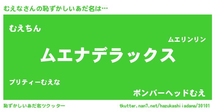 | ヘコむあだ名 | 『むえな(笑)』『むえっ子』 |