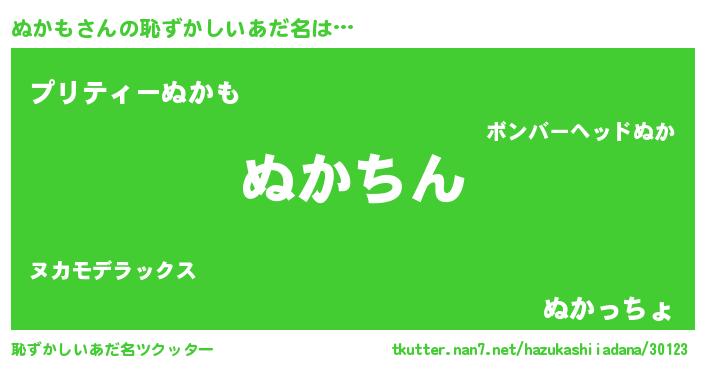 | ヘコむあだ名 | 『ぬかも(爆)』『ぬかふぇ~』 |