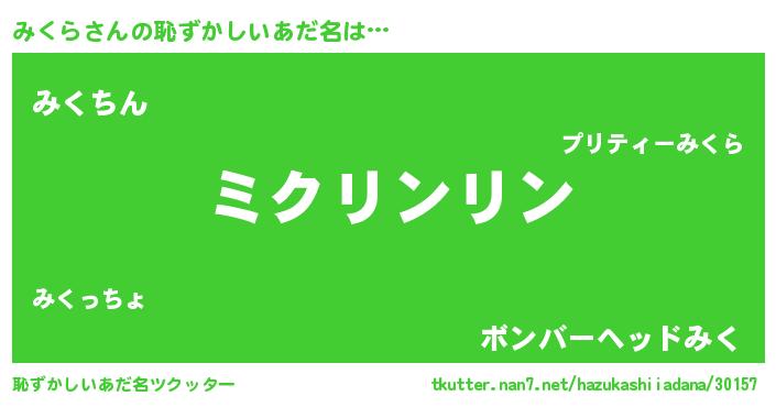 | 意味不明あだ名 | 『とにかく怪しいみくら』 |