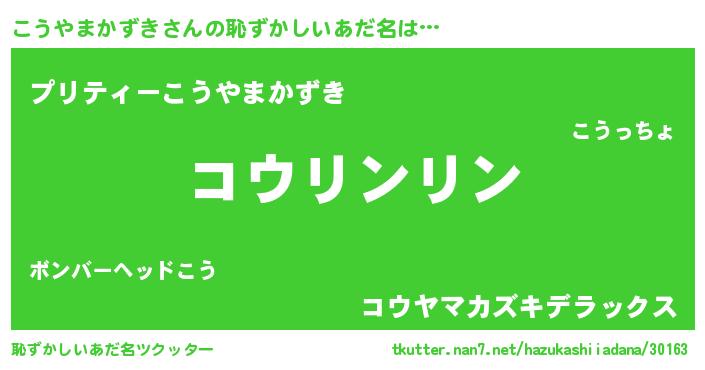 | 男性向けラノベタイトル風あだ名 | 『この素晴らしい世界にこうやまかずきを!』 |