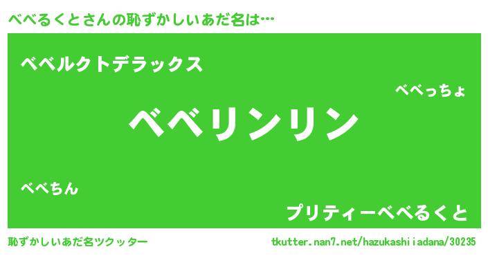 | 意味不明あだ名 | 『とにかく怪しいべべるくと』 |
