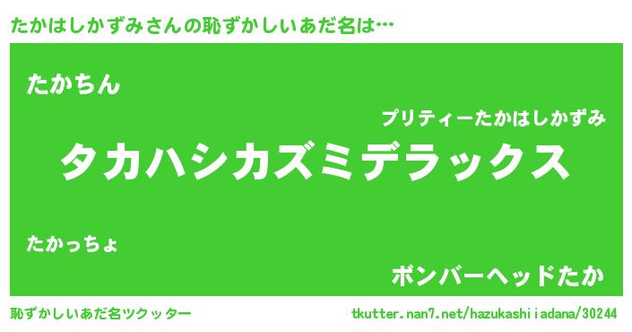 | ヒーロー風カッコイイあだ名 | 『仮面タカダー』『ネオタカハシカズミ』 |