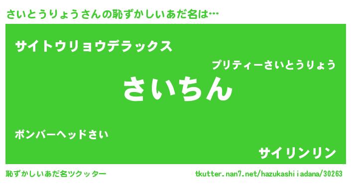 | 意味不明あだ名 | 『永久保存さいとうりょう』 |