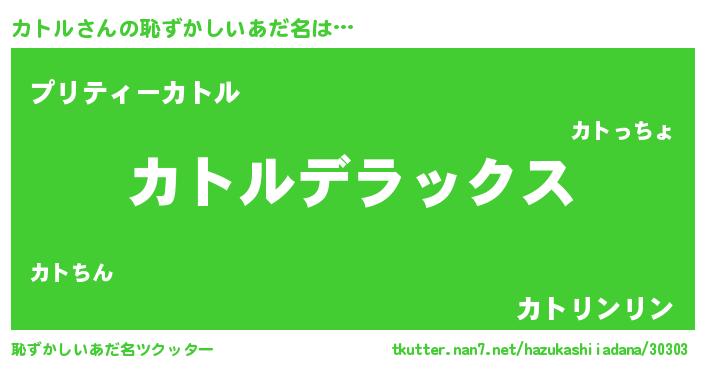 | 男性向けラノベタイトル風あだ名 | 『この素晴らしい世界にカトルを!』 |