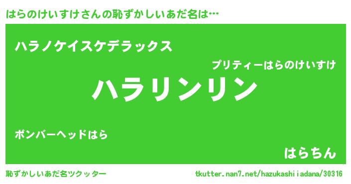 | ポケモン風あだ名 | 『ヒハラノケイスケ』『ハーライ』 |