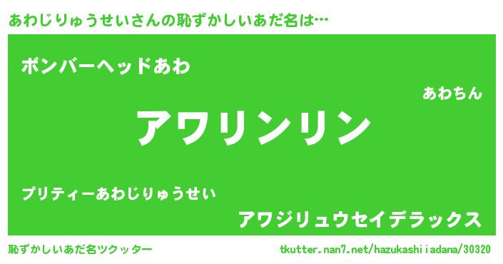 | 意味不明あだ名 | 『とにかく怪しいあわじりゅうせい』 |