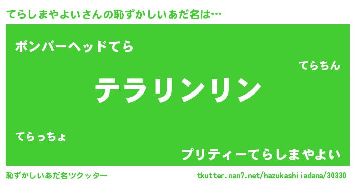 | 男性向けラノベタイトル風あだ名 | 『てらしまやよいの嫁は女の子じゃないと思った?』 |