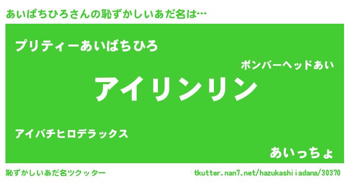 | 男性向けラノベタイトル風あだ名 | 『魔弾の王とあいばちひろ』 |