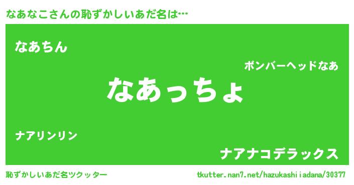 | ヒーロー風カッコイイあだ名 | 『ウルトラなあなこマン』『ネオナアナコ』 |