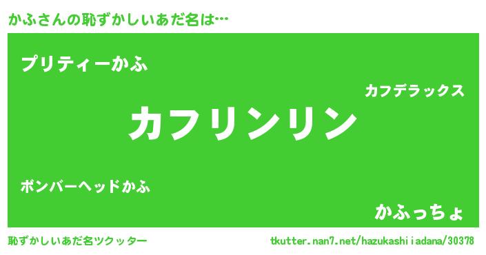 | 男性向けラノベタイトル風あだ名 | 『転生したらかふだった件』『かふの憂鬱』 |